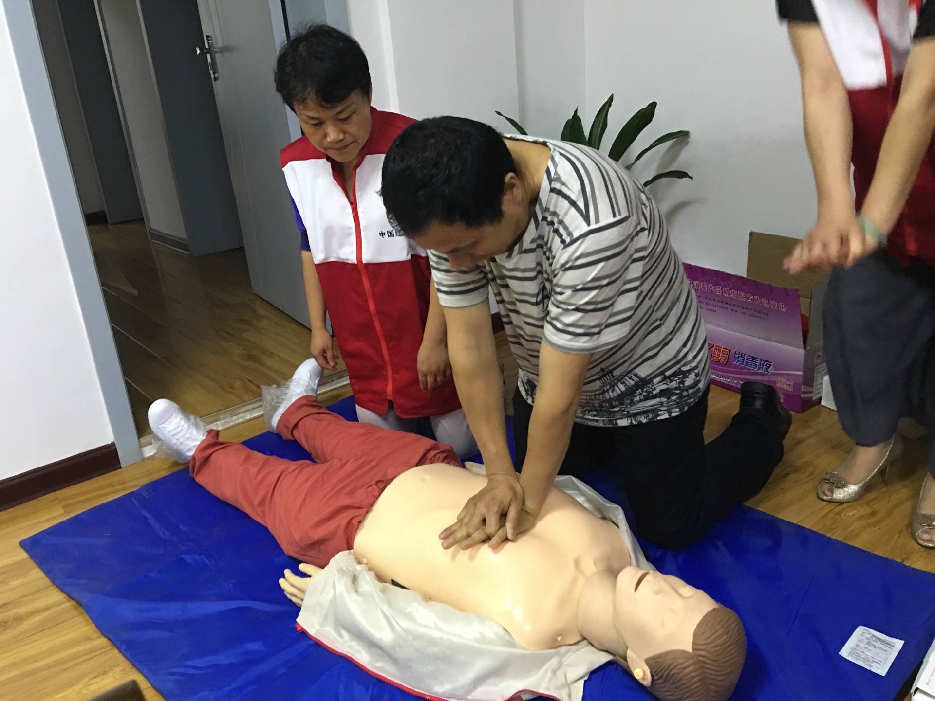 鄂州市中心医院机关党支部全体委员认为, “两学一做”应从实际出发,从人们健康需求和自救知识贫乏的实际情况出发,开展有益于居民生命健康的活动。我院作为鄂州市红十字常务理事单位,有义务和责任向居民传授救死扶伤理念,讲解应急自救技能。为此,在这热情似火的六月,精心组织和策划以“关爱生命 ,守护健康”为主题的应急自我救护技能培训活动,特别安排了在重症监护室工作二十五年之久,应急救护经验丰富的老护士长、现机关支部老党员王燕副主任护师讲授了《心肺复苏急救法》、《止血包扎技术紧急处理》、《踩踏事件应急防护技巧》;机关党支部宣传委员、医务部部长卫琴在繁重的管理事务中抽身到现场讲解了《溺水事件紧急处理》、《异物气道致阻塞》二项自救技术,有多名党员结合自身的专业特点,利用人体模型参与了现场自救技能示范和指导,让学员在实践模拟操作中深切体会。