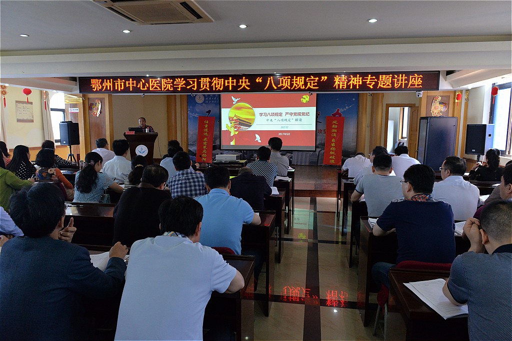 “工作日午餐不得饮酒,招待陪同人数不得超过规定……”5月16日下午,鄂州市中心医院召开学习贯彻中央“八项规定”精神专题讲座,特邀市政协纪检组副组长胡志安同志为全体中层干部讲授廉政党课。