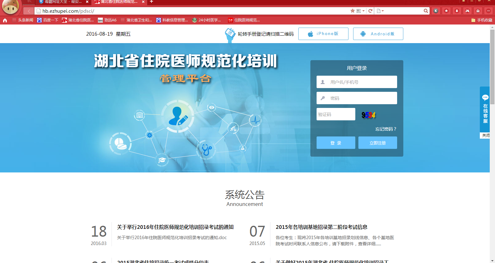 根据住院医师规范化培训管理工作的实际需要,湖北省毕业后医学教育委员会委托湖北省毕业后医学教育研究中心,联合南京品德网络信息技术有限公司研发了“湖北省住院医师规范化培训信息管理平台”。该住培信息平台严格按照国家管理规定和相关住培细则的内容和功能进行设计,利用信息化和互联网等手段,对住院医师规范化培训工作进行全过程管理,为不断提高培训质量和管理水平,提供有力的技术支撑。