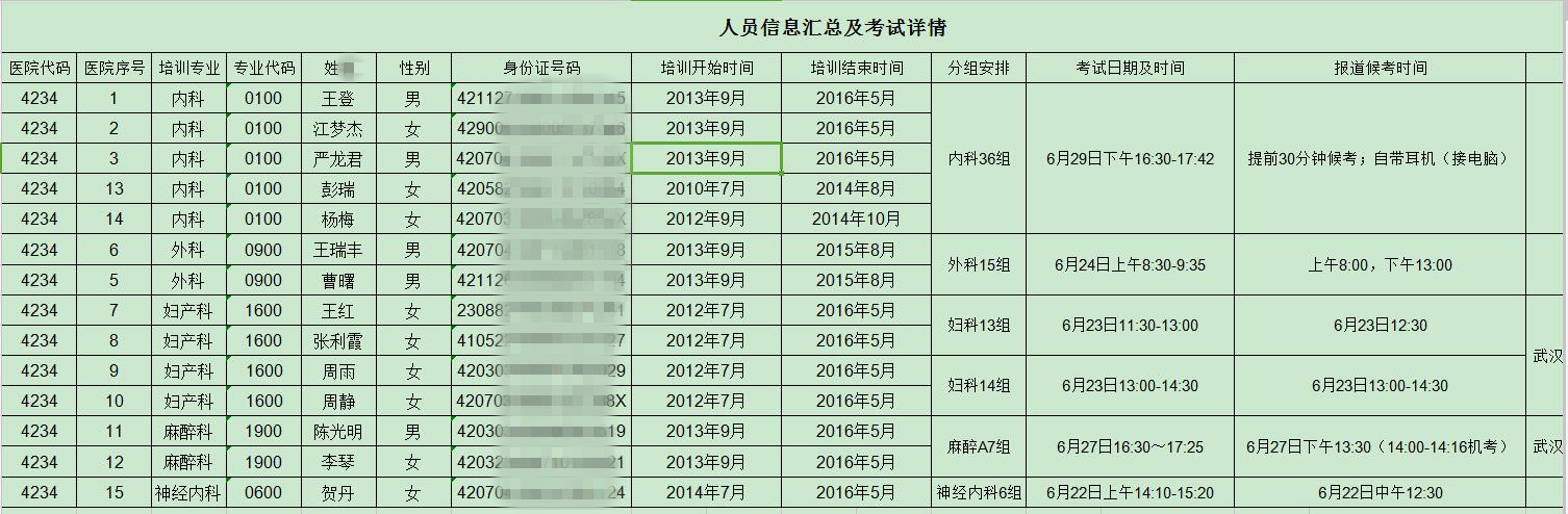 按照《关于做好2016年住院医师规范化培训结业考核工作的通知》(鄂毕医教办(2016)5号)要求,我院共计15名住培对象报名,其中14名住培对象通过资格审核,参加了全省住培结业考试。考试方式采取客观临床结构化考试(OSCE),共5~8站,根据21个专业的培训细则进行设置,每站考试时间8分钟。