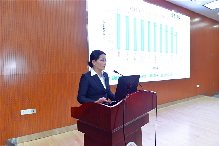 培训中心主任杨琼作题为“不忘初心、牢记使命、持续提升住培质量”的医院住培工作汇报,外科、内科、妇产科、急诊科等11个基地主任有条不紊地依次作基地住培工作汇报。