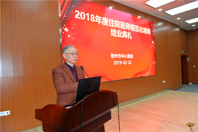 院长陶泽璋在新年寄语中强调三个关键词:一是祝贺,祝贺受表彰的先进集体和个人,以及通过3年住培顺利结业的住培医师们;二是感谢,感谢为医院住培工作默默无闻、克难勇进、无私奉献的管理者和老师们;三是质量,2019年是质量发展年,各级管理人员应加强对住培工作的管理,要敢于管理、善于管理,使住培质量再上新台阶,对于管理过程中发现的问题,要善于总结,并找出相应的整改措施。各位教师应加大在住培教学上精力、时间上投入,提升教师自身综合素质,不断改善教学环境,杜绝形式主义;各位在培的住院医师要设法完成阶段性培训任务,并在培训期间遵守相关规章制度,在工作中也要静下心来,不忘学习,修身养性。